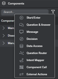 You can narrow down the list of components and nodes that appear in the Components pane, by node type, keyword or both. For example you could choose to focus on decision nodes with the word “set” in their name.