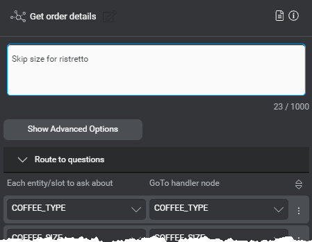 - Drag a node from the design palette onto the Complete area of a question router node.