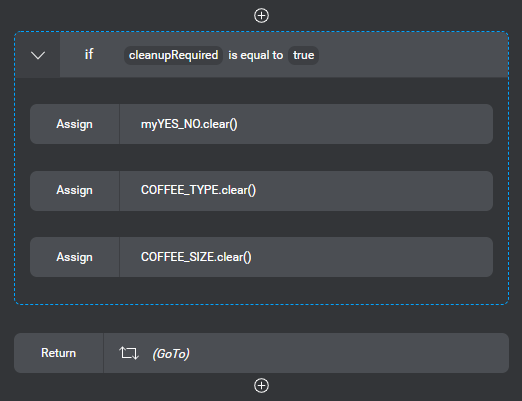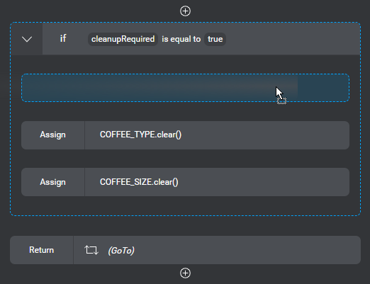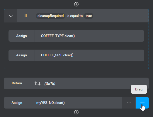 - Drop the selected element at the desired position, above or below another element, or inside a condition.
