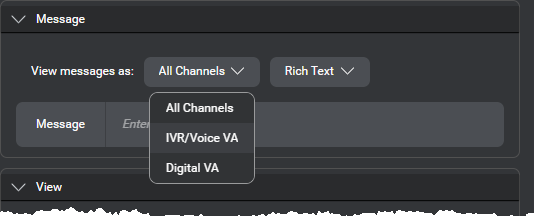 Once you have selected a modality, your selection persists as long as the current channel supports it. If you switch to a context where the applicable channel doesn’t support the selected modality, the modality selector falls back to the first modality available for the current channel. - (Optional) If the latency message is meant to appear in a text form, in the View area, specify formatting information to pass to the client application.