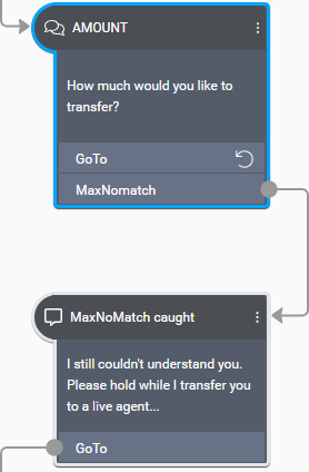 In an open dialog scenario, when the interpretation result includes an entity that is not associated with the active intent, and nothing else indicates that the dialog should switch to another intent, this generates a nomatch event.To set the reference: