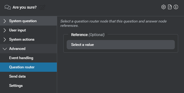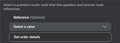The question router reference field identifies the question router node that is to handle any captured entity or intent that is not the entity in focus for this question and answer node.