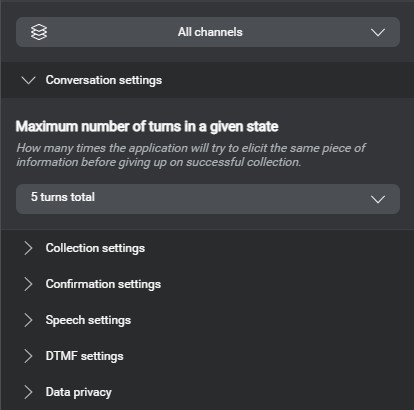 Configure node-level settings, if needed, to override global settings and default behaviors. Node-level settings include the Data privacy setting category, which allows marking a question and answer node as sensitive.
