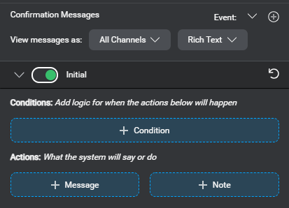 You can define messages to be used at the confirmation step for this node, to supplement any confirmation default messages defined for your project or for specific channels.
