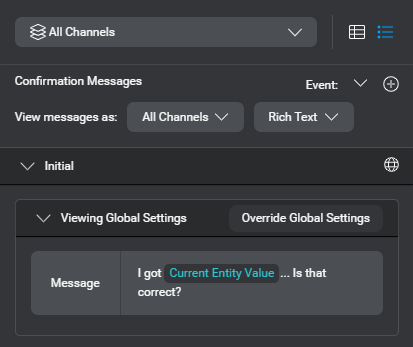 - (Optional) Use the View messages as selectors to review any message variations, by channel and output modality, directly on the compact message.