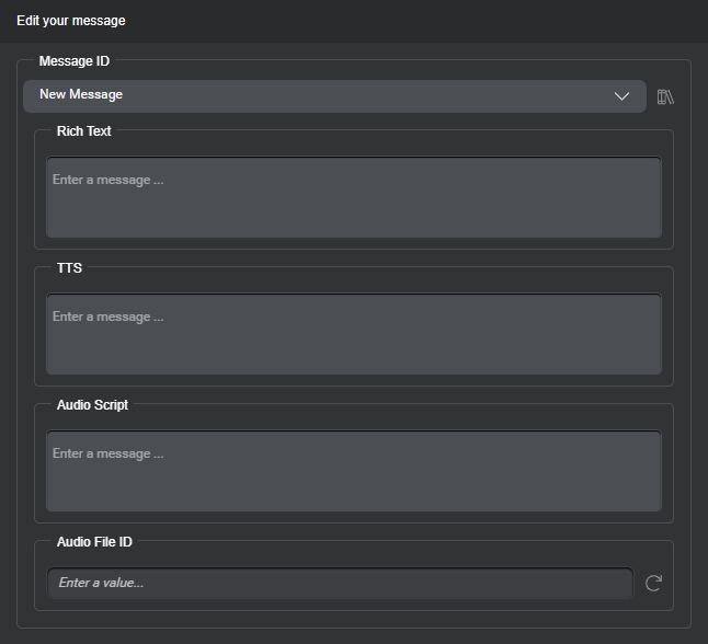 Tip: In the message editor, you can click the Library icon to open the Messages resource panel and add variations to your latency message, for other channels and output modalities. - Click outside the editor to close it.