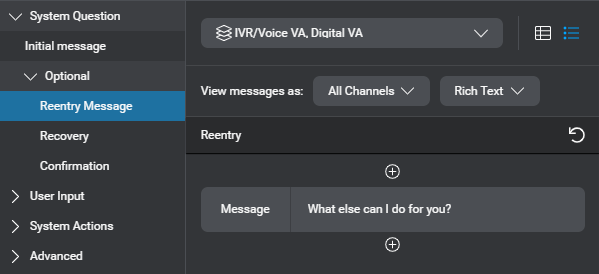 - Expand System Question, then expand Optional, and click Reentry Message.