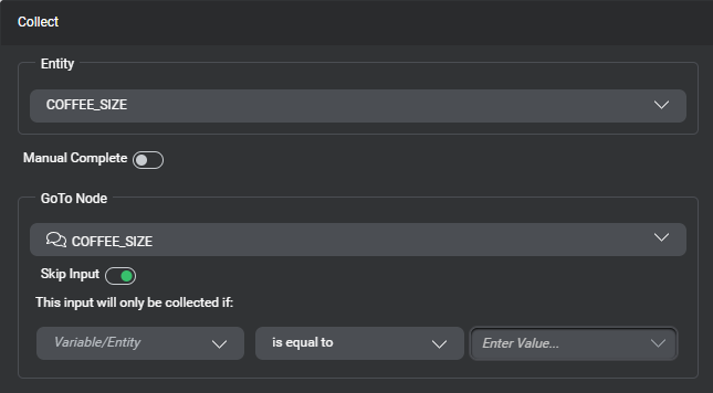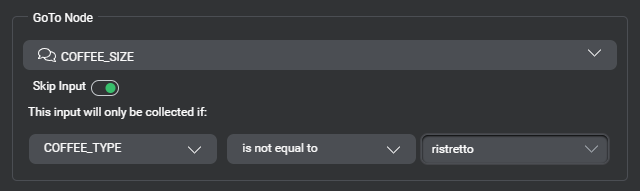 For example, since ristretto only comes in one size, you don’t need to ask for the coffee size when the user orders a ristretto, which translates as collect COFFEE_SIZE only if the value of COFFEE_TYPE is not ristretto: