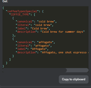 Tip: Use Copy to Clipboard and save the JSON representation of the stub data, to be able to use the JSON bulk input feature the next time you must provide stub data at this data access node.