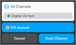 Docking a channel removes all messages and deletes all actions, conditions, and notes that were created specifically for this channel at this node. You cannot undo this operation.View channel-specific dialog flow