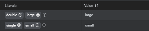 next to the literal large, type double, and press Enter. - Proceed in the same fashion to add the literal single, for the value small.