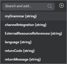 When setting a dynamic reference for a global command grammar, a confirmation grammar, or an entity grammar, you can create the required variable directly from the search field at the top of the variables list.