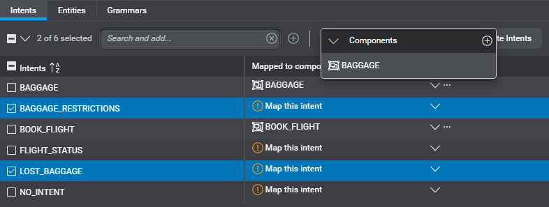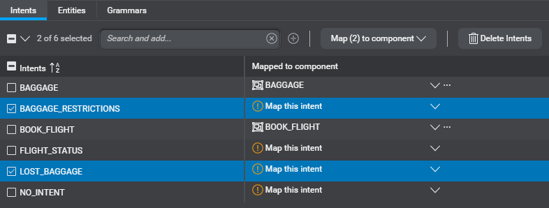 - Use the check boxes beside the intent names to select the intents you want to map.