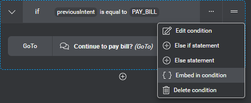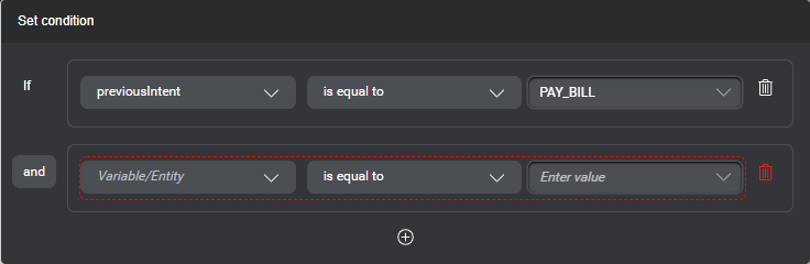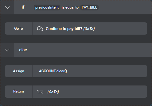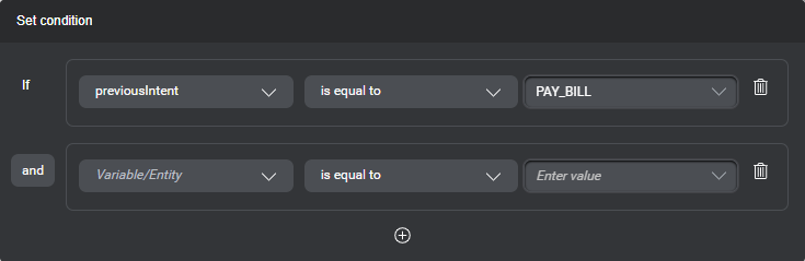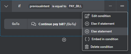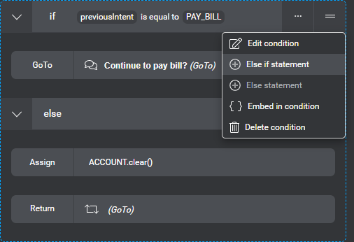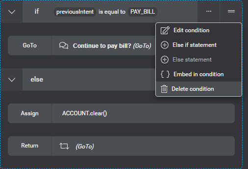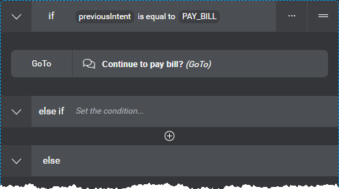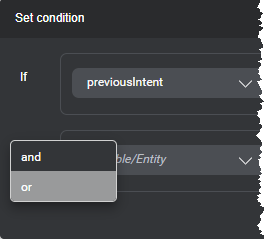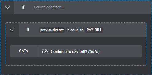 Use conditions to determine the next message or action, based on logical expressions. For example: