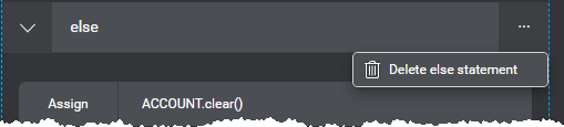 This deletes the else statement and all messages, notes, actions, and conditions under it, inside the current condition.