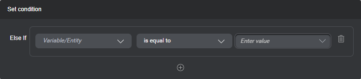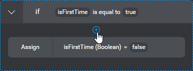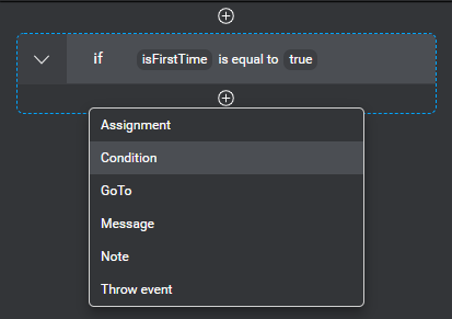 - To add a condition under a condition where other messages, notes, actions, or conditions already exist, bring your pointer to the area where you want insert the condition, click the Add icon
