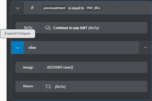The compact condition shows the expression you specified. - Set actions to perform under the else if statement, and add notes to explain your logic, if desired.
