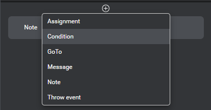 Note that what you can add under a condition depends on the node type and context. For example, in the System Question section of a question and answer node, you can only add messages, notes, and conditions.