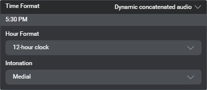 For languages without support for recorded audio playback, only TTS playback output formatting options are available. String values in Audio Script messages support TTS playback (see String TTS playback).