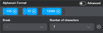 Set a pattern to show groups of characters of specified length with delimiters. The default format is 123-12-12345, that is: 3 characters, hyphen, 2 characters, hyphen, 5 characters.