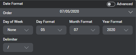 | Day Format | Choose between the long form with leading zero (default), the short form without leading zero, or choose None to omit the day. |