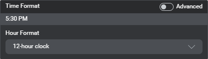 | Hour Format | Choose between a 12-hour clock (default), or a 24-hour clock. |