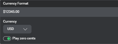 | Play zero cents | Turn on (default) to play “zero cents” (in the session language), when the number of cents (or sub-unit for the specified currency) is zero. |