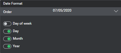 | Order | Choose between Month/Day/Year (default), Day/Month/Year, or Year/Month/Day. |