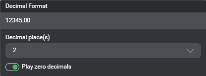 | Decimal places | Choose the number of decimal places to show (0–7). Default: 2. |