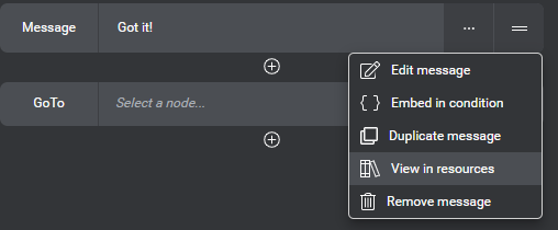 , next to the message selector, to view this message in the Messages resource panel, and verify whether other contexts also reference this message.